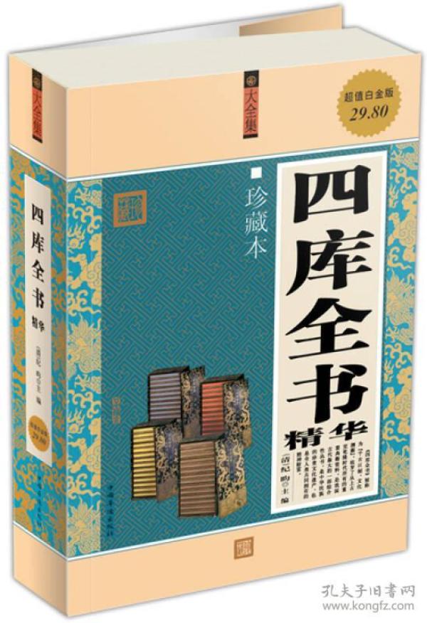 《四库全书精华(珍藏本)(超值白金版)》是清代乾隆年间官修的规模庞大的百科丛书,按经、史、子、集四部44类编排,并以唐玄宗于两都(长安及洛阳)分建四库贮藏四部典籍而定名。它汇集了从先秦到清代前期的历代主要典籍,共收书3505种、79327卷,为中华传统文化最丰富、最完备的集成之作,被誉为“中国文化的万里长城”,为弘扬中国传统文化提供了完整的文献资 料,是中华民族的珍贵文化遗产,