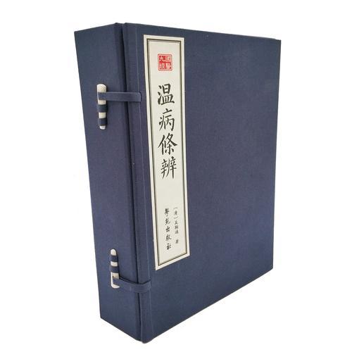 本书为中医古籍《温病条辨》原文繁体竖排,线装函套珍藏本,仿照宋刻本的排版设计,一函四册。《温病条辨》是“中医四大经典”之一,是温病学的重要代表著作之一,共六卷,作者前后花了六年时间才写成。刊行之后,为医家所重,乃致翻刊重印达五十余次之多,并有王孟英、叶霖等诸家评注本,或编为歌诀之普及本。今之温病学教材,取该书之说亦*多。“国医九经”这套中医典籍的繁体竖排,线装函套珍藏本,是在社