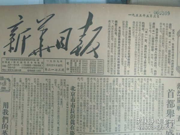 作者 热烈庆祝五一国际劳动节首都举行盛大的庆祝大会和游行。北京市市长彭真在庆祝大会上的开会词。头版