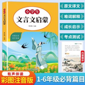 一大优势:富有中国气韵吟诵小古文,启蒙文言文,感受字里行间流动的中国气韵,由此打开古汉语学习之门!二大优势:内容精心设置全文翻译,重难点注释;文言知识,详解详析;课后即练,配套学习,让学生真正读懂读透,有助于日常积累与考试复习。三大优势:易读易懂,易学易教本书编排合理,由简入繁,由易到难,循序渐进,可作为小学生文言文启蒙学习之用,也可供小学语文教师作为文言文教学参考。