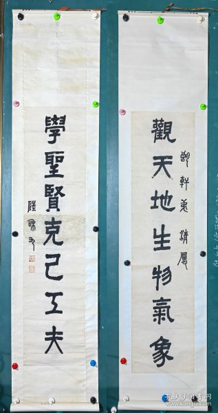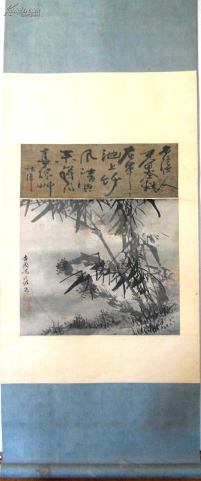 作者 文渊阁大学士文孚书法.道光初年岁贡冯廷佐墨竹联双挖立轴。