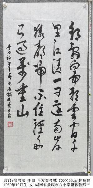 作者 B13471号书法 李白 早发白帝城 123×67cm 作者:李华川