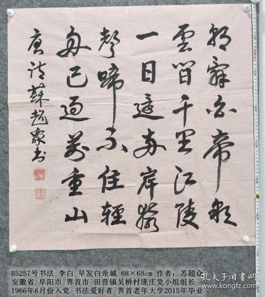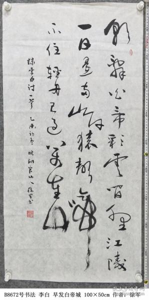 作者 B8672号书法 李白 早发白帝城 100×50cm 作者:徐军