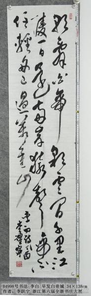 作者 B4998号书法 李白 早发白帝城 34×138cm 作者:李跃宁