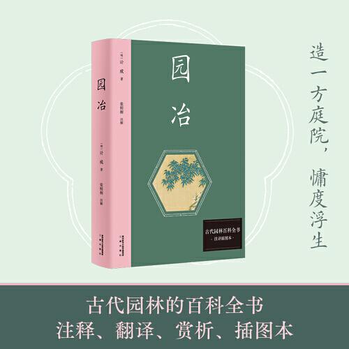 《园冶》为17世纪中国造园学家计成所著,是一部关于造园的百科全书。全书共3卷,附图235幅,分为兴造论、园说、相地、立基、屋宇、装折、栏杆、门窗、墙垣、铺地、掇山、选石、借景13篇。,本版《园冶》除了原文之外,新增了译文,难以理解的词语进行了注释,同时,每个章节还附有详细的赏析,使普通读者能够顺畅阅读、理解全书。同时,保留了原书线稿图并进行加工处理,书前还新增了与原书相对应的古