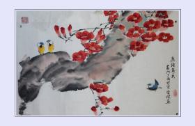 作者 李杰国画作品,山东人,现定居于北京。中国美术家协会会员、中国水墨研究院院士、北京画院院长,王明明工作室高级创作班画家、清华大学美术学院张旭光工作室专业书画家、中国画院签约画师。《鸟语花香》。