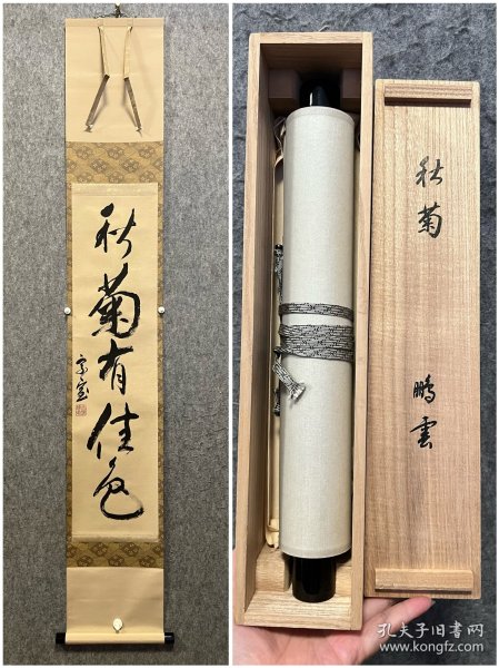 作者 日本回流 日本著名画家 陶艺家 清水公照书法《箇中妙(个中妙)》(手绘)()纸本立轴(带原木盒 共箱)