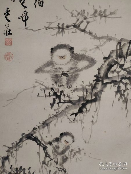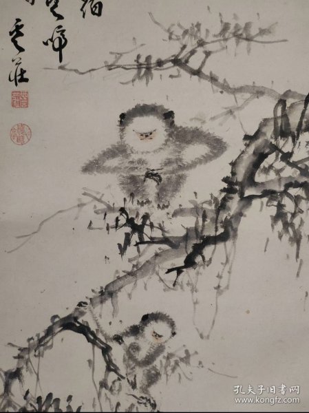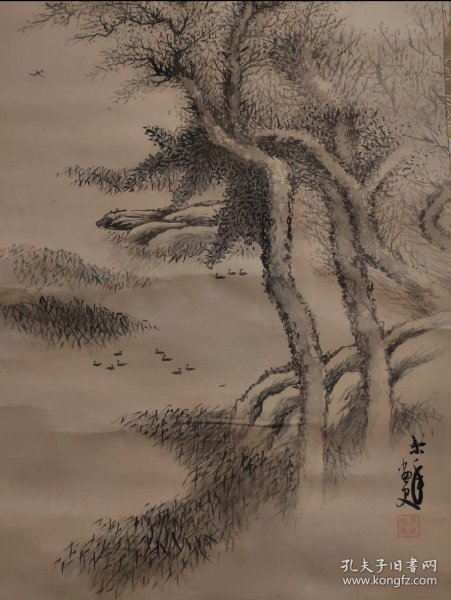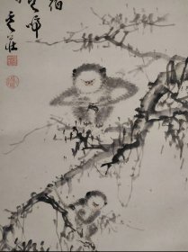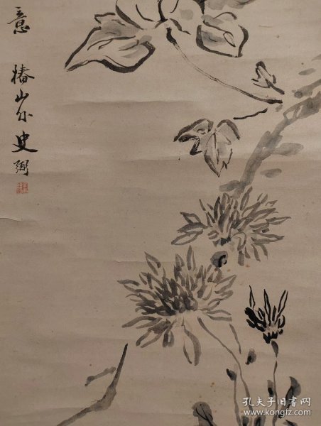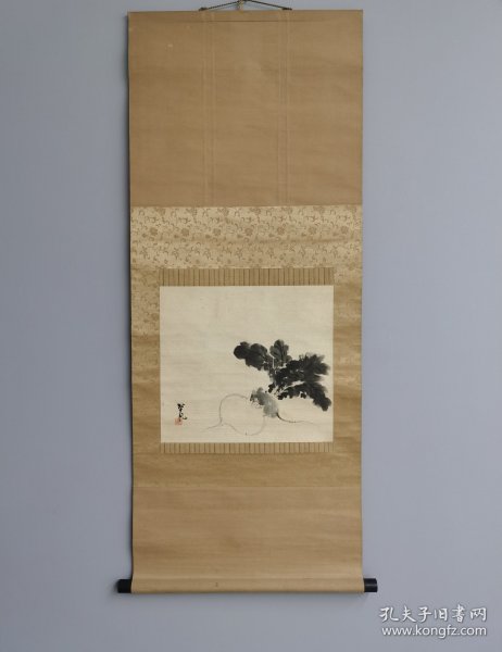 作者 日本回流 日本著名画家 长野草风(1885-1949)(川合玉堂弟子)《写意萝卜与老鼠》 (手绘)()绢本立轴