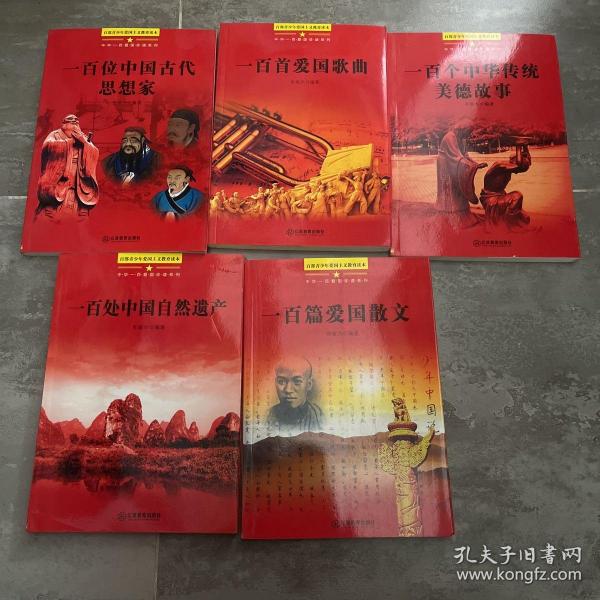 (一百首爱国歌曲,一百处中国自然遗产,一百位中国古代思想家,一百篇爱国散文,一百个中华传统美德故事)5本