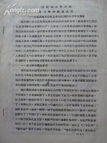 出版社 山西省交城县城关公社瓦窑大队插队知青集体