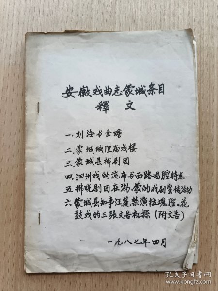 出版社 安徽戏曲志.蒙城条目