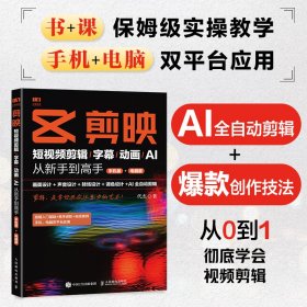 (正版全新,版本以实际在售为准)剪映:短视频剪辑/字幕/动画/AI 从新手到高手(手机版+电脑版) 作者:代杰著 定价:69.8元 9787115654496