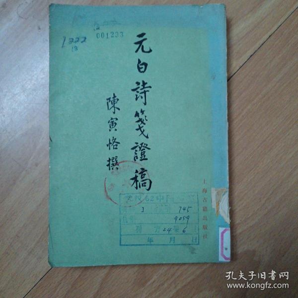 【微瑕三联】:元白詩箋證稿 定价77元