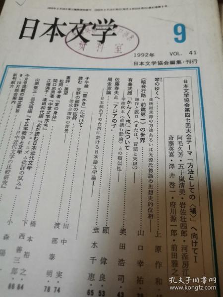 出版社 日本文学协会发行 1源氏物语乐器继承論与思想2 贺直哉暗夜行前篇谦作阪口开头结尾性与罚3岛武郎kan kan虫论是德秋水社会主行为論 4郁达反論佐藤春亚洲子错误 5台周金波皇民文学统治論6批上春树舞舞除雪创