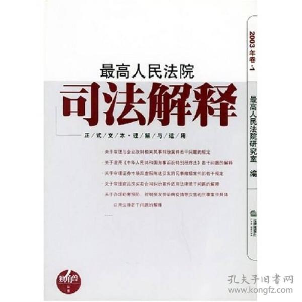 自2003年起,《最高人民法院司法解释》将改变按年度汇编的出版形式,根据本年度司法解释的出台情况,在保持全面深入的编撰特点的前提下,不定期汇编出版2-4册连续性读物,从而更为及时地为广大读者奉献权威的司法解释参考用书。,本卷收录了2003年1月至5月最高人民法院发布的8个司法解释正式文本(编号为法释[2003]1至8)及起草人亲笔撰写的相关分析文章,另附有精心选择的较为重要的若