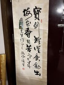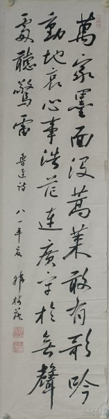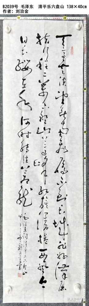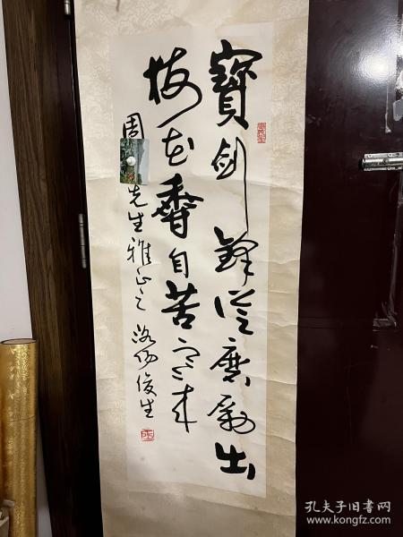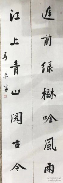 作者 B15799号书法对联 放鹤去寻三岛客 任人来看四时花 134×32cm×2条 作者:耿全现