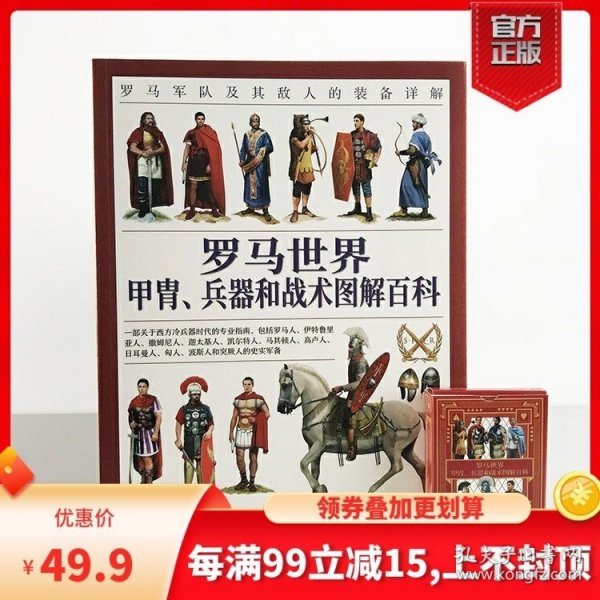 ★军事史视角下的部落与帝国,西方冷兵器时代的视觉盛宴。 ★超过600幅精美彩色手绘插画及历代地图、布阵图、油画、雕塑、遗址照片,打造出罗马军事历史的百科全书。 ★包括罗马人、伊特鲁里亚人、撒姆尼人、迦太基人、凯尔特人、马其顿人、高卢人、日耳曼人、匈人、波斯人与突厥人等民族,全*展现古代地中海世界的军事传统与战争艺术。