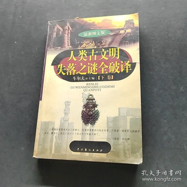 车尔夫主编 人类古文明失落之谜全破译(下)(最新图文版) / 中国戏剧 出版社 人类古文明失落之谜全破译(下)(最新图文版) / 2003-01 / 平装