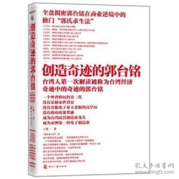 《创造奇迹的郭台铭》以郭语录和郭台铭小故事为主,细说鸿海成长简史,提炼出郭台铭的人格特质、行事风格、领导统驭、经营哲学等,让你看见郭台铭“赢”的方法!一口气全盘掌握“郭氏求生法”! 王樵一,台湾省国立大学硕士毕业,现为专职文字工作者。热爱阅读、写作,性喜观察社会趋势,钻研产业动态,探讨成功人士秘诀。