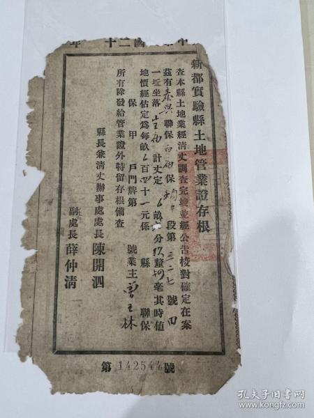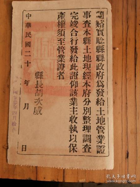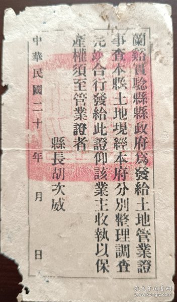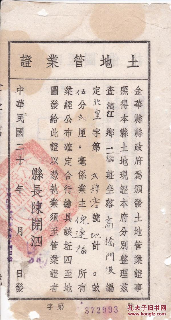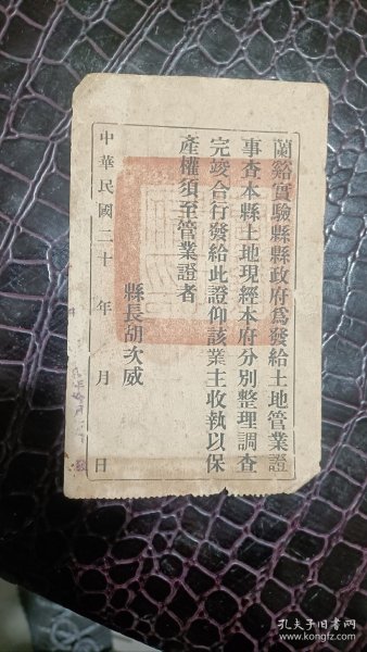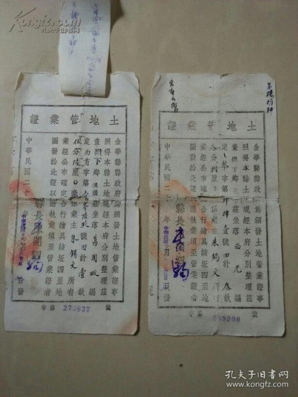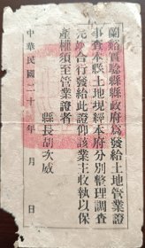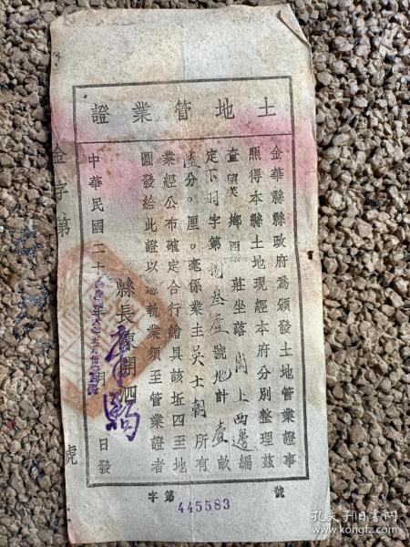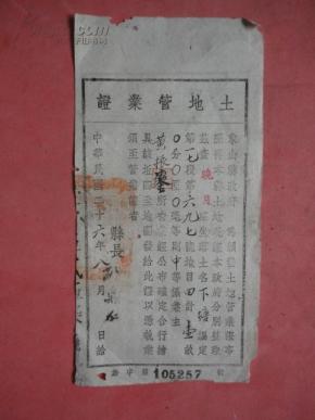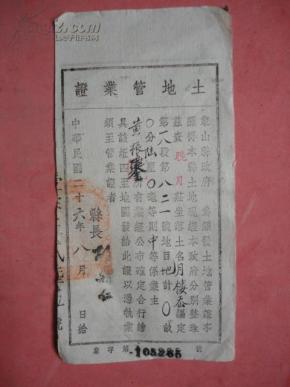 象山县土地管业证