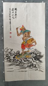 作者 B44246号国画 人物 魁星点斗 连中三元 68×36cm 作者:蔡岚