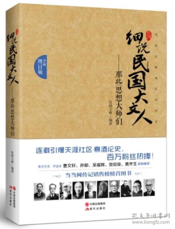 《细说民国大文人:那些思想大师们(全面增订版)》对十位民国时期的思想大师的生平逸事进行了梳理,重现了三千年不遇之大变局下,这些大师傲拔的志趣和风骨,以及终归悲悯和无可奈何花落去的时代命运。他们出世、入世,进退自如:做学问与做人,结合得浑然天成;同侪间以道相交,重情重义……,《细说民国大文人:那些思想大师们(全面增订版)》在天涯论坛连载时,好评如潮引来百万粉丝疯狂追读跟帖,被誉为