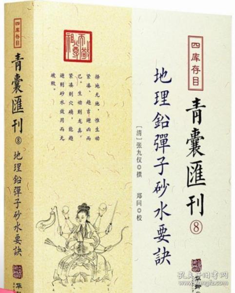 《地理铅弹子砂水要诀》又名《地理正义砂水要诀》,清张九仪先生著。先生以为,大凡看地,须龙穴砂水舆向,详为讲求,方云全法。若单说一龙字,以龙取向,以龙取水,大事毕已。殊不知吉凶之转运,祸福之枢机,全在一穴。穴中消砂,穴中纳水,穴中乘龙气,穴中见砂若何,水若何,乃定一向。此诀之至要者也。是书以先生历年登临所阅之旧地,一一证之,发其奥妙,汇集成书。书中保留了大量的古典堪舆学文献,有重要的参考价值。