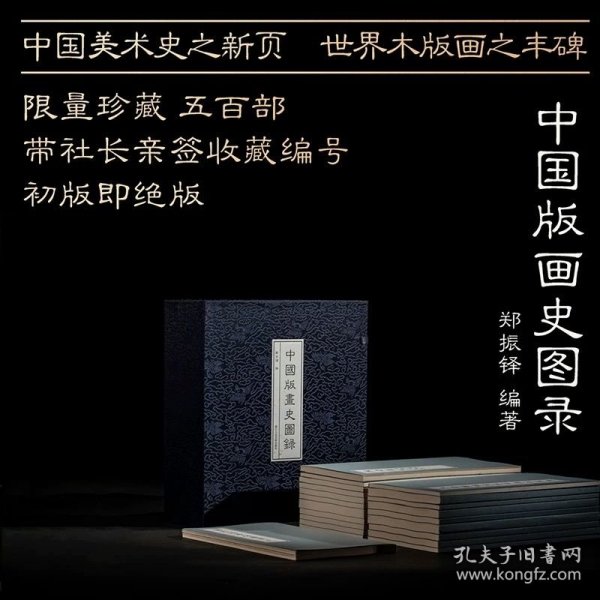 中国版画史图录收录唐代至明清各类版画一千三百多幅,内容涵盖经史子集四部,是我国目前为止收录数量最多的版画图录,全面的展出了我国古代版画发展的历史面貌,是后人研究版本学,古代艺术发展的重要典籍文献.。