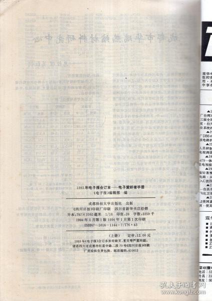 电子报》编辑部 / 电子科技出版社 / 1993-12 / 平装