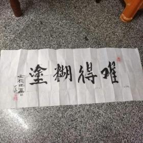作者 B5861号书法 难得糊涂 138×34cm 作者:张庆全