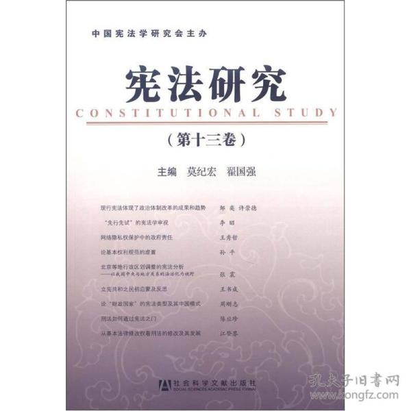 现行宪法制定30年来,以宪法为核心的中国特色社会主义法律体系已经形成,作为法治建设的重要标志——宪法实施工作虽然有了一定的起色,但总体来说,理论与实践两个方面都存在许多亟待解决的问题。《宪法研究(第13卷)》侧重从深化宪法学理论研究的主题、强化宪法学理论对宪法实施工作的指导作用出发,选编了能够准确反映学界当下最新关注热点的代表性作品,以期为学界提供一份值得关注的宪法学研究文献,