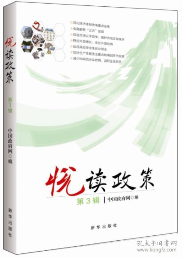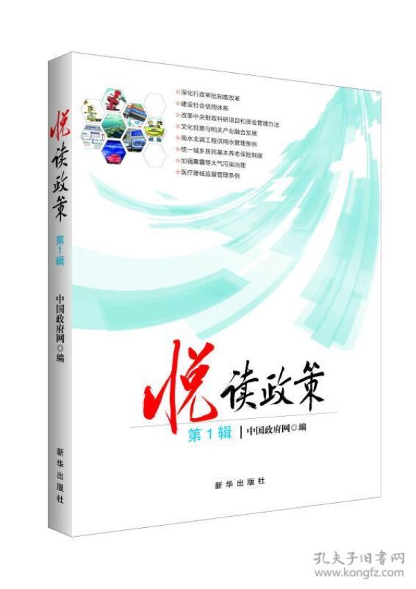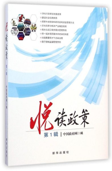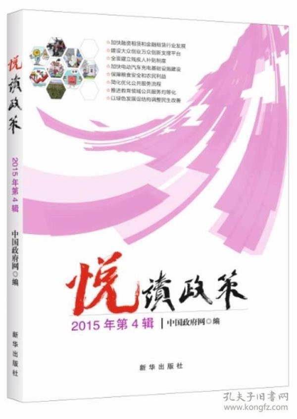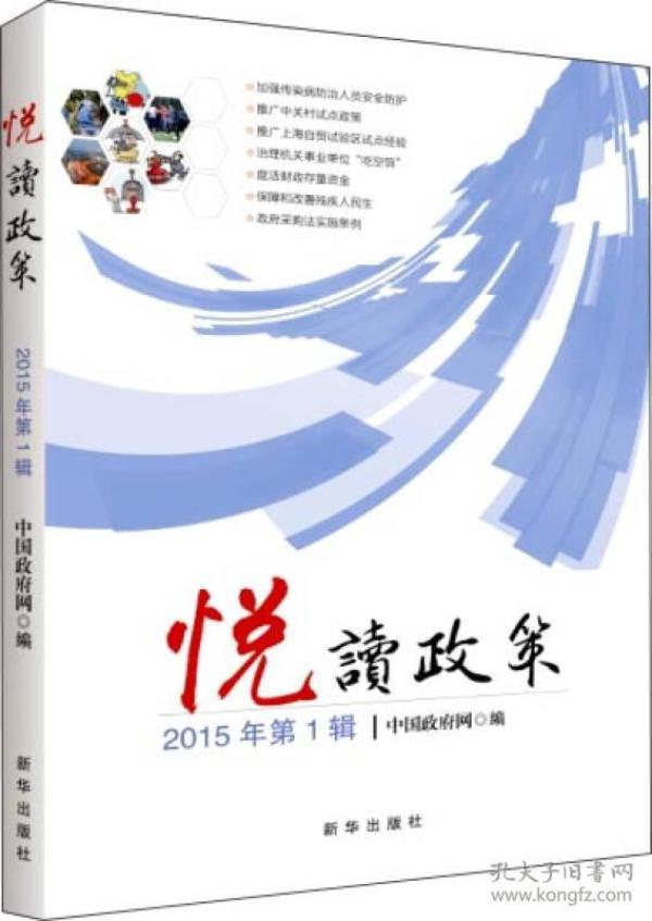 “悦读政策”系列图书由中华人民共和国中央人民政府门户网站(简称“中国政府网”)组织编写,图文并茂、深入浅出地解读了国务院的重大政策。  《悦读政策(2015年第1辑)》为该系列图书2015年第1辑,分专题介绍了加强传染病防治人员安全防护、推广中关村试点政策、推广上海自贸试验区试点经验、治理机关事业单位“吃空晌”、盘活财政存量资金、保障和改善残疾人民生、政府采购法实施条例等7个方