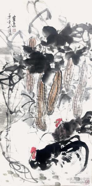 作者 B40138号国画写意花卉荔枝 大吉大利 50×100cm 作者:张梅娥