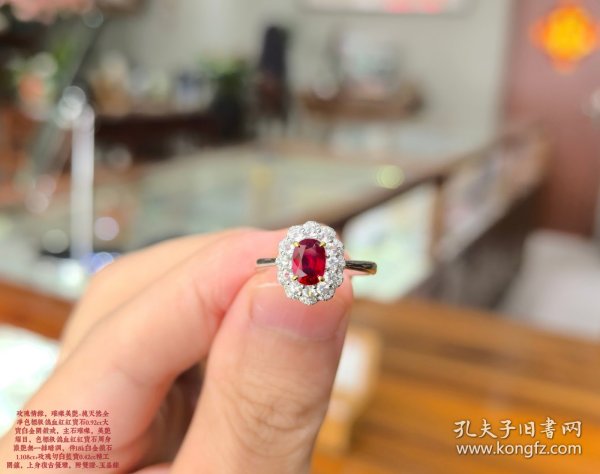 玫瑰情缘,璀璨美艳~镶嵌新品·纯天然全净色标级鸽血红红宝石0.92ct大宝白金围钻戒,美艳耀目,色标级鸽血红周身如鸽血浓艳一丝暗调,伴18k白金钻石0.108ct+玫瑰切白蓝宝0.42ct精镶,复古优雅~独特优雅,指围14#
