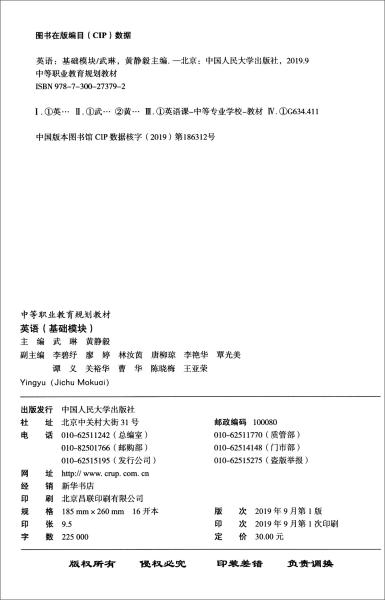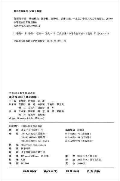 、唐柳琼、武琳 编 / 中国人民大学出版社 / 2019-09 / 平装