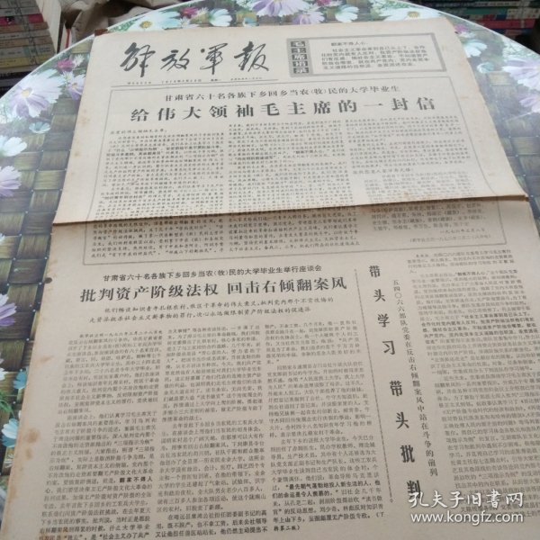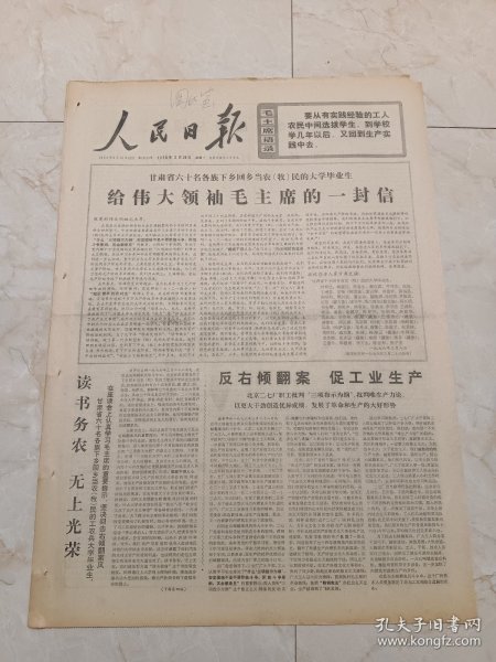 出版社 甘肃省60名各族下乡回乡当农牧民大学毕业生伟大领袖毛主席1封信