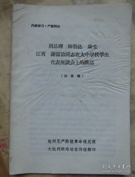 出版社 沧州无产阶级革命造反派大批判联络站宣传组翻印