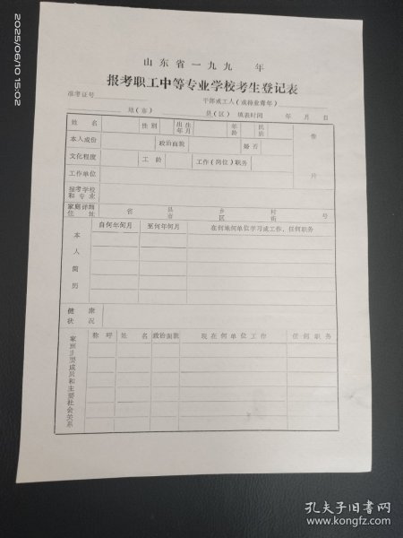 出版社 毕业生登记表