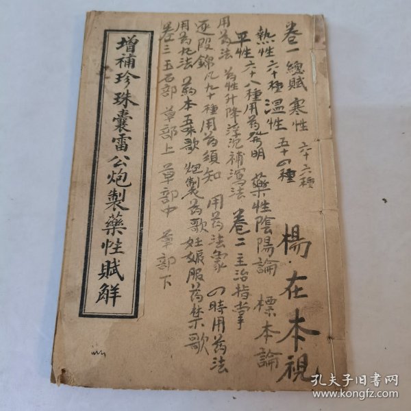 增补珍珠囊雷公炮制药性赋解