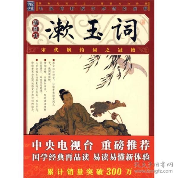 《漱玉词(插图本)》有以下几个主要的特点:  一、为使读者更好地感知这位婉约凄美而傲立文坛的“女儿花”作品的艺术魅力,我们不但精选了《漱玉词》正集42首,还附有存疑的李清照词、李清照诗文;另有朱淑真、贺双卿、唐婉、顾太清等历代其他名媛词选,使女儿家的种种情态跃然纸上。  二、为方便读者更好地阅读,我们立足于一般读者的实际需要,给生僻的字、词注有拼音,对难懂的词语配以注释,特别是