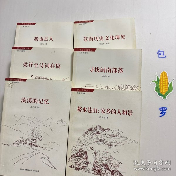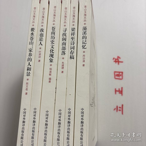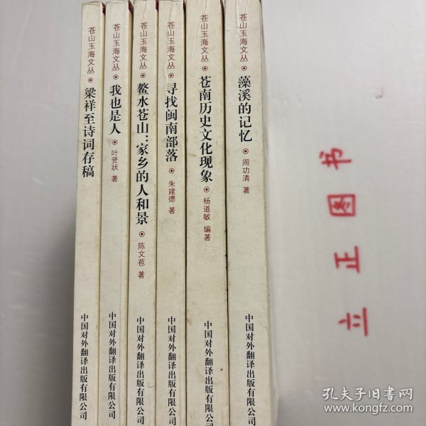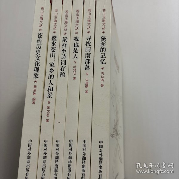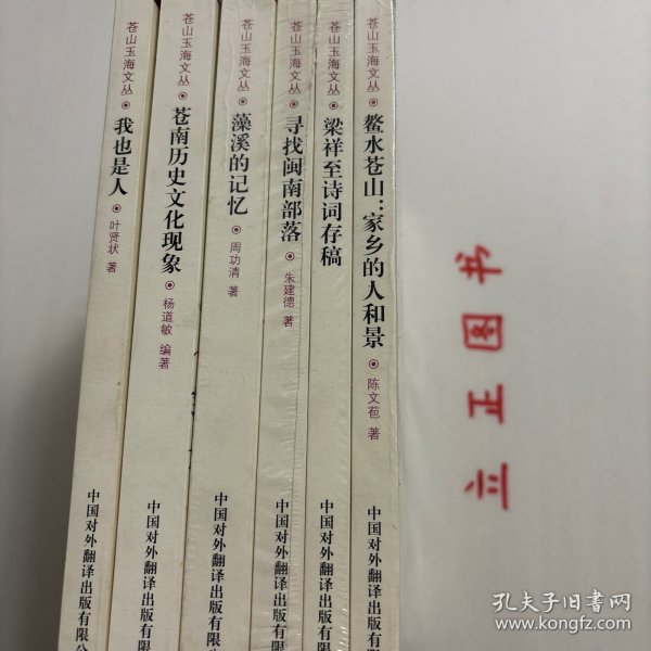 《苍山玉海文丛》系列,全六册,六本,由中国对外翻译出版社发行,原苍南县县长董庆华写总序,丛书包括杨道敏的《苍南历史文化现象》、朱建德的《寻找闽南部落》、陈文苞的《鳌水苍山:家乡的人和景》、周功清的《藻溪的记忆》、叶贤状的《我也是人》和《梁祥至诗词存稿》共六部作品。苍南建县三十年来,文联事业得到大发展,出了不少人才和不少精品。县文联每年都有一批作品问世,并集结出版,品相好,学术价值高,适合收藏与阅读