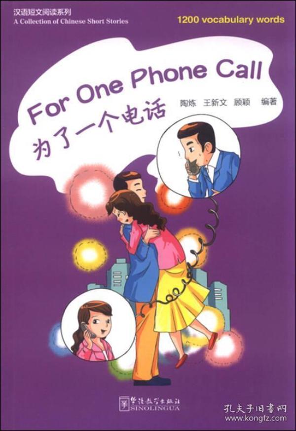 汉语短文阅读系列丛书是为世界各国汉语学习者编写的、有英文注释的汉语初级读物。《为了一个电话》一共4本,每《为了一个电话》有20个故事,配有插图。故事的题材包括幽默笑话、名人轶事、哲理故事、爱情故事等。本系列读物的词汇量控制在1200词以内;每个故事的长度限定在450-600字左右,生词严格控制在5-10个之间;故事正文后附有汉语拼音课文及练习题。