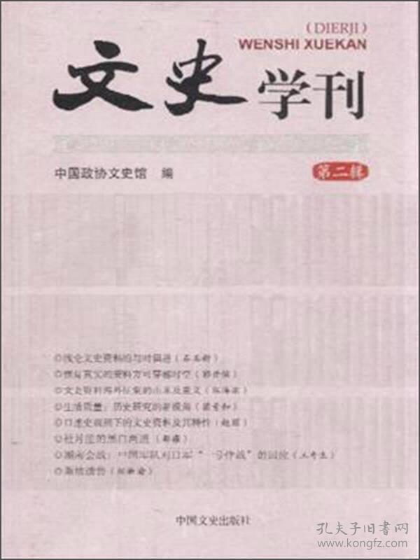 《文史学刊(第二辑)》是由史学界专家编写的一份专业性、综合性的文史学术刊物。编委会人员均为文史学界的人士,且具有一个强大的创作团队。《文史学刊(第二辑)》主要分为本刊专稿、文史资料、口述史、晚清史、民国史、学术札记、文史文物和学术动态八个版块,其特色在于发挥全国政协文史资料的优势,将文史资料的巨大价值充分发挥出来,主要体现在本刊专稿和文史资料两个板块中。《文史学刊(第二辑)》收