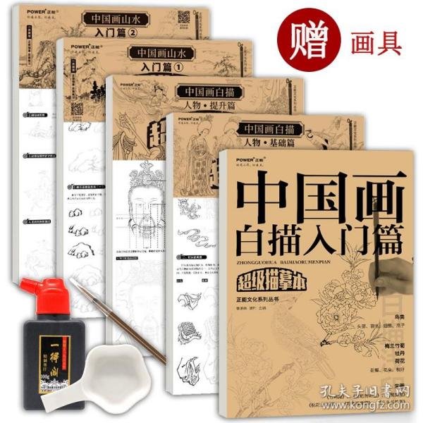 本书精选国家图书馆馆藏的康熙十八年初刻版芥子园画谱,选取画谱中的树谱、石谱、点景人物、点景建筑、诸名家画谱中的部分内容,处理图片后重新编排,浅印底稿,方便读者描红。,整个礼盒套装包括32张白描练习 (含2页笔墨基础练习),1支勾线笔,1瓶墨汁,1个墨碟,1包装订材料读者打开礼盒后不仅可以直接上手绘制,还能搭配礼盒中的装订材料包将散页的练习稿装订成册,便于收纳。,本书页面疏密有度