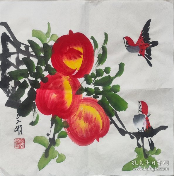 作者 河南省美术家协会会员黄文娟老师国画小品斗方一幅尺寸34*34一平尺。软片保真。