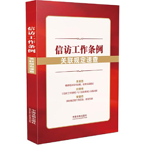 1. 为《信访工作条例》标准文本增加“条文主旨”,方便读者参考检索。 2. 将与《信访工作条例》相关的党内法规、国家法律进行分类整合和梳理,并附于《信访工作条例》主体条文之后,方便读者参照阅读。 3. 附录《信访工作条例》与《信访条例》关联对照表,突出《信访工作条例》与《信访条例》 的关联变化,方便读者了解《信访工作条例》的新特点,掌握信访工作的新规定和新精神。