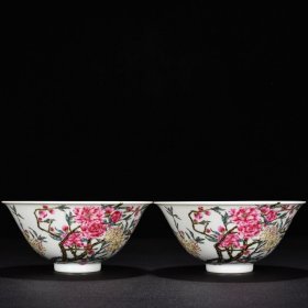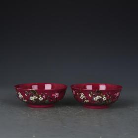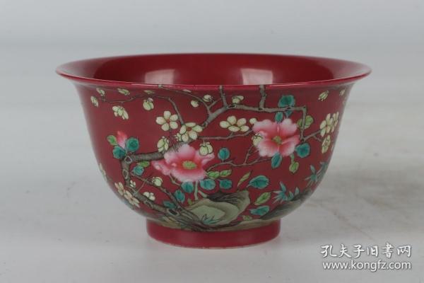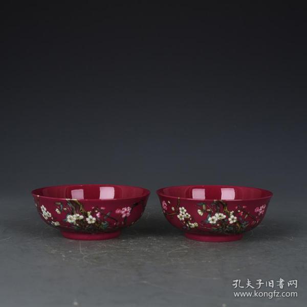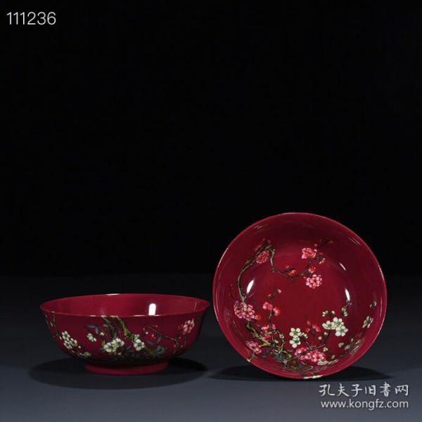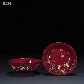 作者 清雍正年制胭脂红地粉彩梅花纹