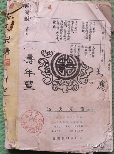 出版社 汤氏宗谱/第四卷/义士堂/沭阳县汤氏家谱/汤氏族谱/1994年印刷