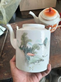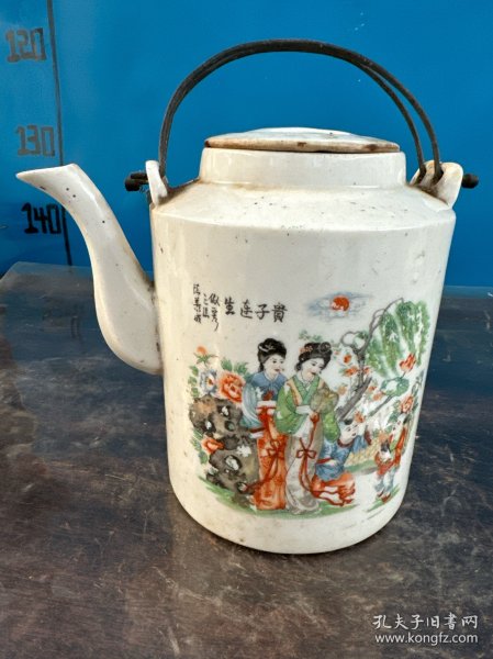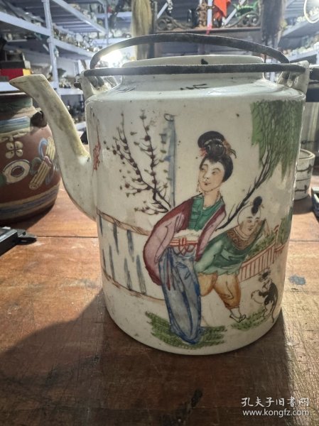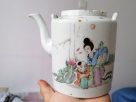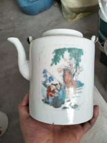 作者 江西胡海清 手绘人物提梁茶壶 粉彩人物茶壶 提梁茶壶 江西景德镇茶壶