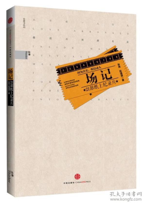 《场记:21部纸上纪录片》是21部国内外优秀纪录片,分别从历史、宗教、文化、经济、生态环境等众多角度描绘了不同时间、空间,不同历史变革下,人与社会的关系和面貌。   赵涵漠,原《中国青年报》冰点周刊记者,现为《人物》杂志记者,她擅长时政、社会公共与文化领域报道,文本优美流畅,兼有思想深度。  张伟,资深媒体人